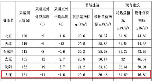 根據(jù)《全國(guó)主要城市采暖期耗熱量指標(biāo)和采暖設(shè)計(jì)熱負(fù)荷指標(biāo)》,大連市中山區(qū)節(jié)能建筑每平方米采暖季供暖所需熱能為20.6w/㎡*24h*131d/1000=64.77kwh/㎡