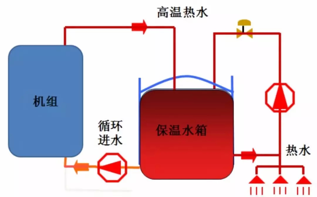 當機組安裝低于水箱時,水箱與機組之間的高度差不應大于8m,超過8m時應安裝中間過渡水箱;當機組安裝高于水箱時,則要注意循環水泵的選型,在克服高落差的情況下務必保證單機循環流量不低于循環保溫水流量規定值。