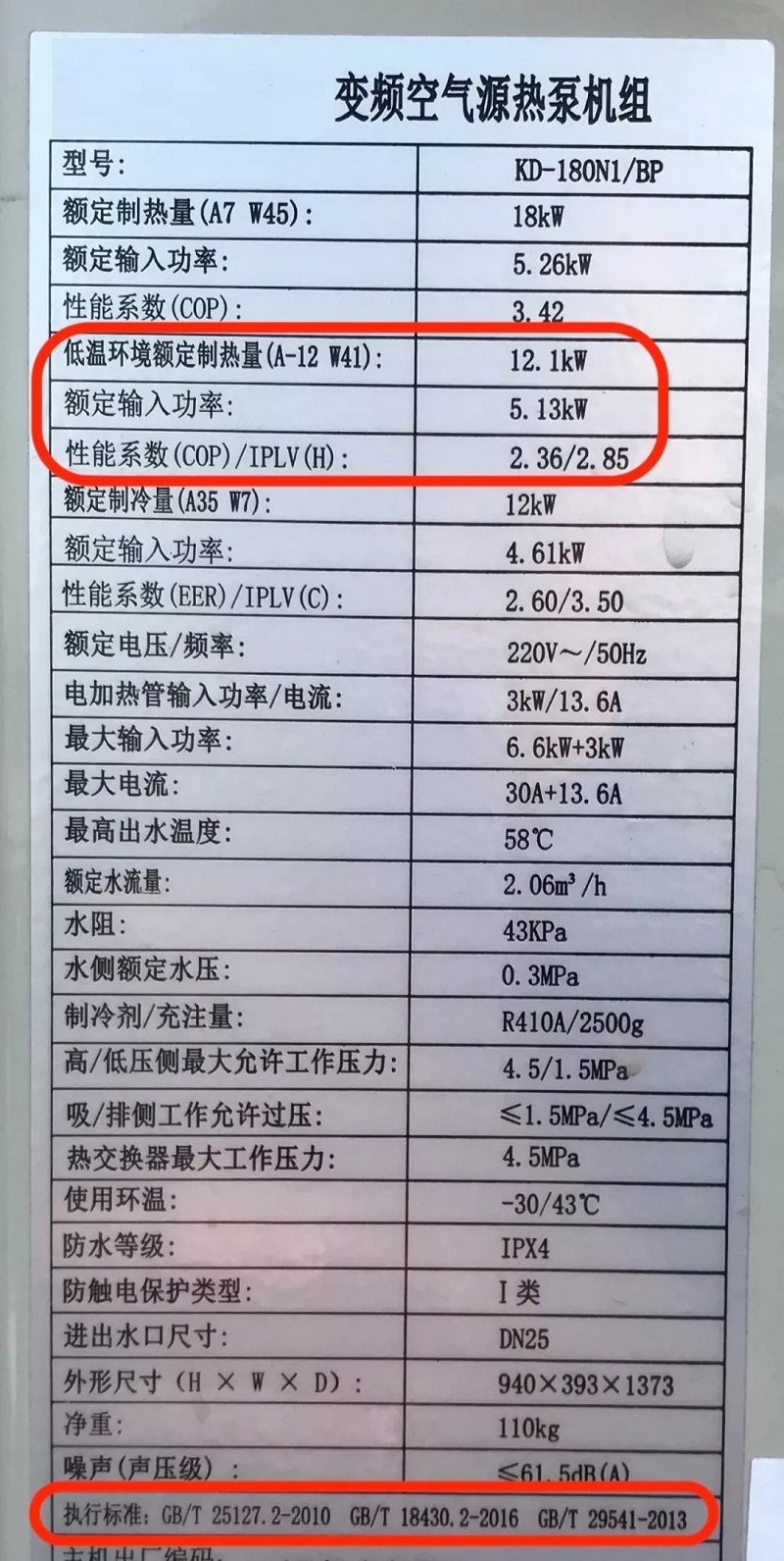 從其銘牌上我們可以看出,該機型執行的標準是GB/T 18430.2。該標準適合于風冷熱泵,其制熱名義工況是7℃。而根據北京農委的要求,低溫空氣源熱泵的送檢要求為: