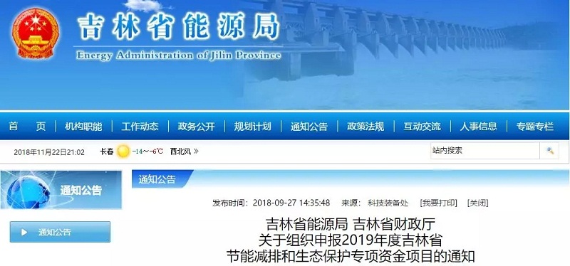 2018年9月25日,吉林省能源局、吉林省財政廳聯合印發《關于組織申報2019年度吉林省節能減排和生態保護專項資金項目的通知》,指出申報項目屬于新能源和可再生能源開發利用、節能綜合利用已完工項目(不包括大型固定資產投資項目及基礎工程項目)。根據吉林省政府確立的全省能源行業重點工作任務,提出本年度專項資金重點支持新能源和可再生能源開發利用項目。支持 專項資金采取事后獎補方式。