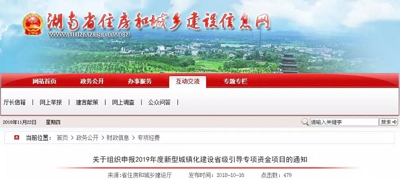 2018年9月29日,湖南省住房和城鄉建設廳、湖南省財政廳聯合印發《關于組織申報2019年度新型城鎮化建設省級引導專項資金項目的通知》,指出在綠色建筑方面,重點支持可再生能源示范項目。