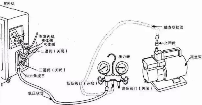 因此,空氣源熱泵在安裝時(shí)候必須做好抽真空。
