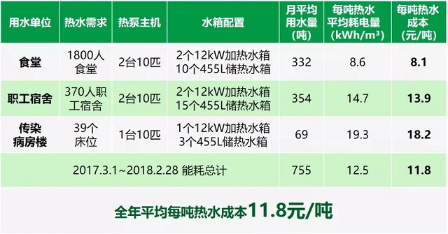 根據(jù)該人民醫(yī)院要求,分別對食堂、職工宿舍及傳染病房樓設置獨立的點對點的空氣源熱泵熱水系統(tǒng),不改變原先的閉式供水系統(tǒng)形式,改造后的系統(tǒng)需完全滿足日常熱水需求,并留有設計余量。由于空氣源熱泵所具備的優(yōu)勢和特性正好可滿足該要求,該人民醫(yī)院最終決定通過“節(jié)能效益分享型合同能源管理的模式”,對部分功能區(qū)(食堂、職工宿舍及傳染病房樓)實施了熱水系統(tǒng)改造,并選用了“5套10匹承壓式熱泵熱水系統(tǒng)”,分別供應醫(yī)院食堂、職工宿舍及傳染病房樓熱水,并簽訂了為期5年的節(jié)能效益分享型能源管理合同。