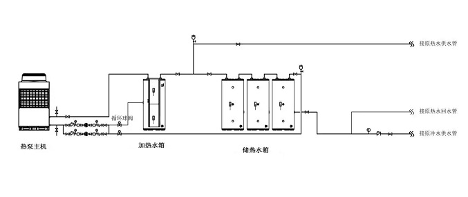 更為重要的是,在系統(tǒng)層面有著更為突出的節(jié)能效果:整個系統(tǒng)采用模塊化承壓水箱,憑借閉式系統(tǒng)熱水利用率高,隨用隨補等特點,系統(tǒng)熱水儲量僅為傳統(tǒng)熱泵系統(tǒng)的1/3左右,原廠生產的水箱保溫性能也遠優(yōu)于普通開式水箱,因而系統(tǒng)散熱損失大大降低;承壓水箱在供水時也無需對熱水進行增壓,系統(tǒng)中水泵的電耗也大大減少。系統(tǒng)綜合能耗較傳統(tǒng)熱泵系統(tǒng)可以降低30%,每年可以節(jié)省一筆可觀的運行費用。