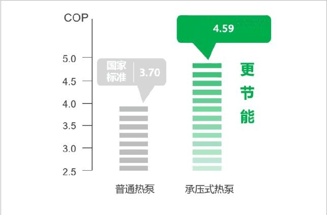 1,創(chuàng)新直熱承壓式熱泵技術,高效換熱,COP高達4.59