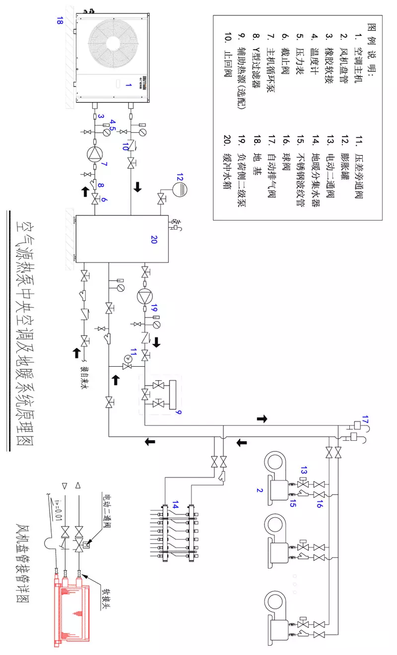 經過大量理論和工程實踐可知,空氣源熱泵機組與低溫熱水地板輻射采暖末端系統是一種很好的組合方式。