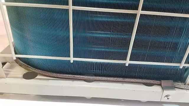 圖2是蒸發器,蒸發器的翅片之間都有間距,如果蒸發器翅片間距大的話,那么結霜的面積就小;而間距越小,翅片就越密,那么結霜的面積就越大。空調為了做到高效和體積小,間距一般為0.8毫米,最大也就是1.1毫米。