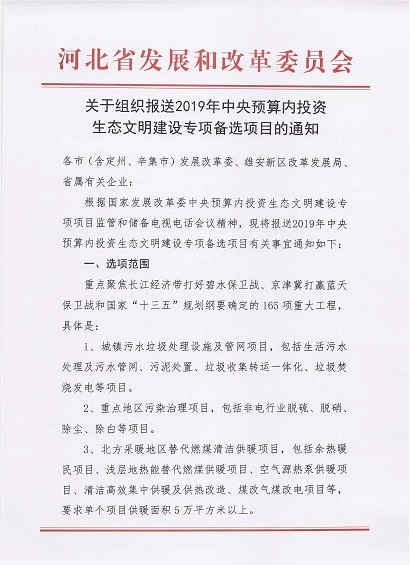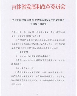文件名稱:《關(guān)于組織申報2019年中央預算內(nèi)投資生態(tài)文明建設(shè)專項備選項目的通知》