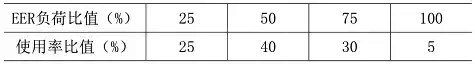 A是100%運(yùn)轉(zhuǎn)時(shí)的COP值或EER值;B是75%運(yùn)轉(zhuǎn)時(shí)的COP值或EER值;C是50%運(yùn)轉(zhuǎn)時(shí)的COP值或EER值;D是25%運(yùn)轉(zhuǎn)時(shí)的COP值或EER值。可以看出,空調(diào)的IPLV值,更加逼近其實(shí)際工作中的平均能效比。