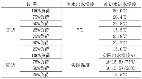 3、IPLV下的不同負(fù)荷冷卻水進(jìn)水溫度=0.145×(負(fù)荷百分?jǐn)?shù))+15.5。