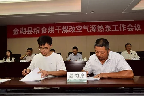 8月23日下午,金湖縣召開糧食烘干煤改空氣源熱泵項目推進現場會,40多家糧食烘干企業負責人現場觀摩了李海坤、柏基和兩家“煤改電”試點合作社,有4家糧食烘干企業與省綜合能源服務公司簽訂協議。至此,該縣糧食烘干煤改電已完成20臺,簽約改造50臺,占具備改造條件糧食烘干設備的53.8%,推進力度全市第一。