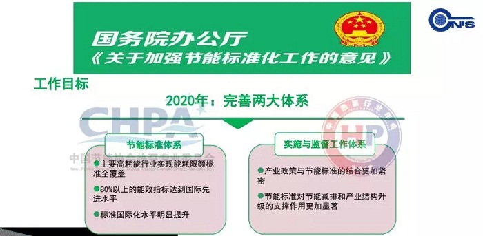 首先,向大家簡要介紹一下我國標(biāo)準(zhǔn)標(biāo)識的概況。我國高度重視節(jié)能標(biāo)準(zhǔn)化工作,除《節(jié)能法》之外,很多政策文件都提到要加快制定能效和能耗限額標(biāo)準(zhǔn)。在2015年國務(wù)院辦公廳頒布的《關(guān)于加強(qiáng)節(jié)能標(biāo)準(zhǔn)化工作的意見》中提到,到2020年國家要完善兩大標(biāo)準(zhǔn)體系建設(shè):一是“節(jié)能標(biāo)準(zhǔn)體系”,提出主要高能耗行業(yè)實現(xiàn)能效限額標(biāo)準(zhǔn)全覆蓋,80%以上的能效指標(biāo)都要達(dá)到國際先進(jìn)水平,標(biāo)準(zhǔn)國際化水平要明顯提升;二是“實施與監(jiān)督工作體系”,要求產(chǎn)業(yè)政策與節(jié)能標(biāo)準(zhǔn)結(jié)合更加緊密,節(jié)能標(biāo)準(zhǔn)對節(jié)能減排和產(chǎn)業(yè)結(jié)構(gòu)升級起到顯著的支撐作用。