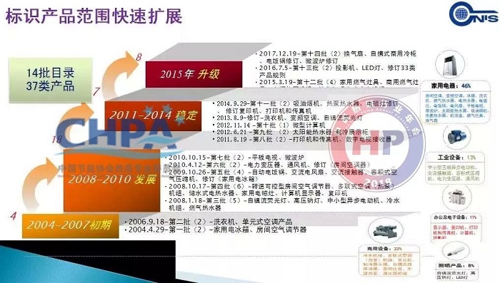 目前國家的節(jié)能標(biāo)準(zhǔn)有300余項(不含工程建設(shè)標(biāo)準(zhǔn)),其中強(qiáng)制性標(biāo)準(zhǔn)約占60%,其余為推薦性標(biāo)準(zhǔn)。重點(diǎn)包括:強(qiáng)制性能耗限額標(biāo)準(zhǔn)106項強(qiáng)制性能效標(biāo)準(zhǔn)65項。依據(jù)能效標(biāo)準(zhǔn),我國于2004年正式實施了強(qiáng)制性能效標(biāo)識管理制度,到目前為止已經(jīng)發(fā)布14批目錄,有37類產(chǎn)品納入到了能效標(biāo)識的目錄范圍。