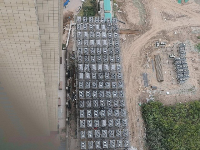 與傳統的鍋爐熱源不同,空氣源熱泵通過“搬運”室外空氣中儲存的熱量到室內來達到供暖目的,空氣流通量及空氣溫度決定了最終的有效熱量。該項目的最大困難就是社區最初并未預留足夠場地擺放空氣源主機,最終僅留出72×16(最初64×16)米場地(正常來說需要約2畝地擺放主機),同時南面及東面有建筑物圍擋,嚴重限制了機組通風及擺放自由度,對于140臺機組而言就是災難!