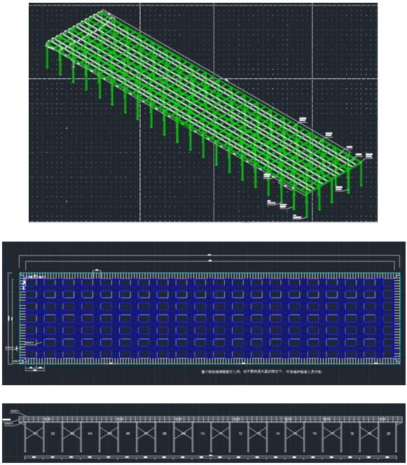 設備支架在設計時,需要考慮空氣源熱泵機組的重量,管網重量,管網內水的重量,支架自身的重量,以及機組及水泵的運行震動等。在對每個細節進行反復計算,并將多種方案進行設計研討,最終決定將原有方案進行深度優化設計。既保證設備安全平穩運行,又能方便后期設備的檢查、維護。見下圖: