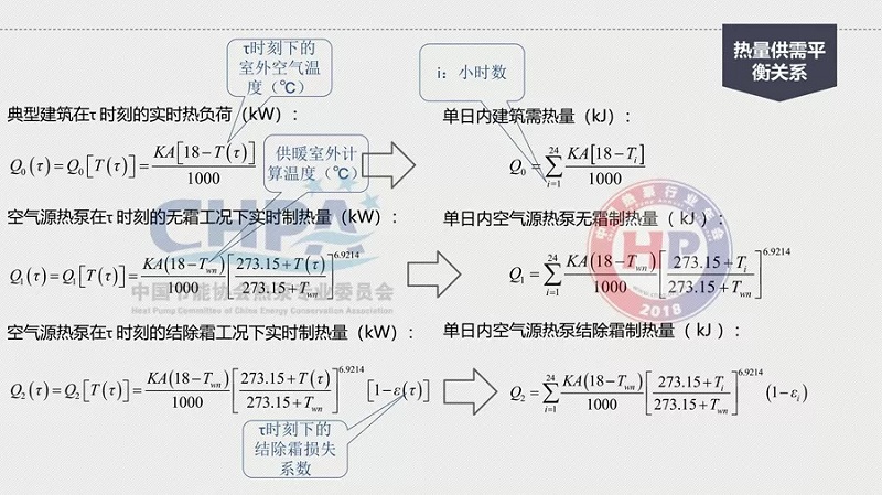 為此,我們首先做了室外計算溫度日內熱量供需關系的分析,選擇了一個計算的建筑;然后,針對不同城市的典型建筑,做了一個關于熱泵的初選,計算它的供需關系。