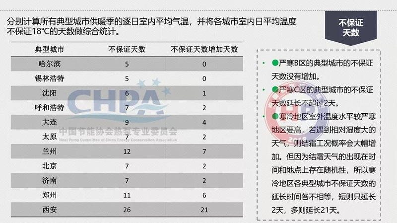 二是嚴寒B區典型城市不保證天數沒有增加,嚴寒C區典型城市不保證天數增加不超過2天,寒冷地區典型城市由于結霜因素影響,不保證天數增加天數各不相等,短則2天,長則21天。