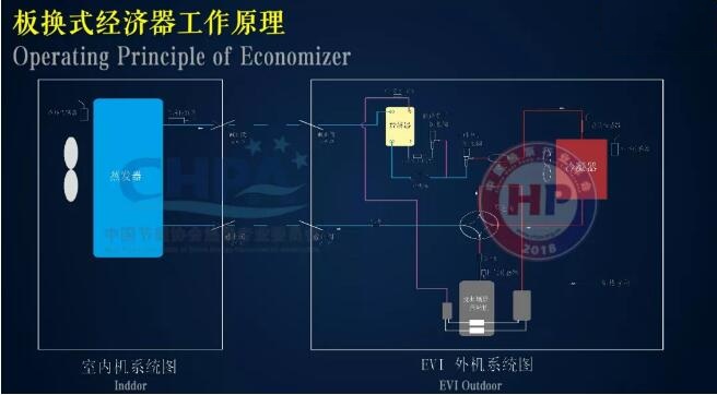 空氣源熱泵熱風機在競爭激烈的“煤改電”市場,可采用一些最經濟的方案。簡單的說,板換式經濟器可從系統安全性角度分析;板換式經濟器要好控制一些,控制好EVI入口的過熱度基本就能保證不會有輔路回液的問題。而閃蒸器方案如果采用最經濟的方式,輔路不增加電磁閥控制,需要一級節流和二級節流配合好,否則可能產生回液的問題。需要通過大量實驗驗證找到規律,好處就是發現規律后控制反而變得簡單了,因為控制目標和這兩級節流的方向是一致的,不存在相互影響的問題。