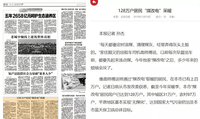 北京日報:北京128萬戶居民實現空氣源熱泵等清潔電采暖