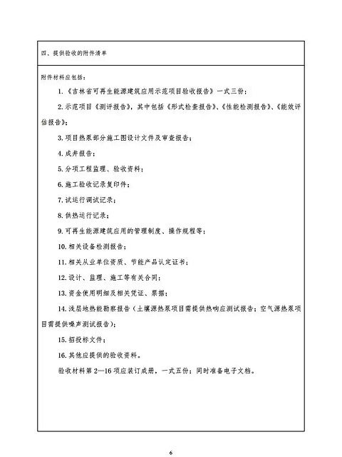 1.《吉林省可再生能源建筑應(yīng)用示范項目驗收報告》一式三份;