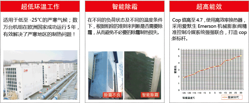 超低溫空氣源熱泵是利用太陽能光熱深度利用的新一代熱水設備。近十年來,由于空氣源熱泵技術高效、節能安全、環保的特性,成為全球關注的技術。超低溫空氣源熱泵技術就是通過消耗少量的電能驅動,把熱量從低溫區域轉移到高溫區域的一種設備。夏天,熱泵將室內熱量轉移到室外,實現制冷功能;冬季,熱泵吸收室外大自然的熱量,送到室內實現制熱采暖。簡而言之,就是通過效果少量的電力來實現熱量的搬運,從而達到制冷、制熱的目的。可根據客戶需求配置專用暖氣片、風機盤管、地暖管等終端,提高產品的使用體驗。